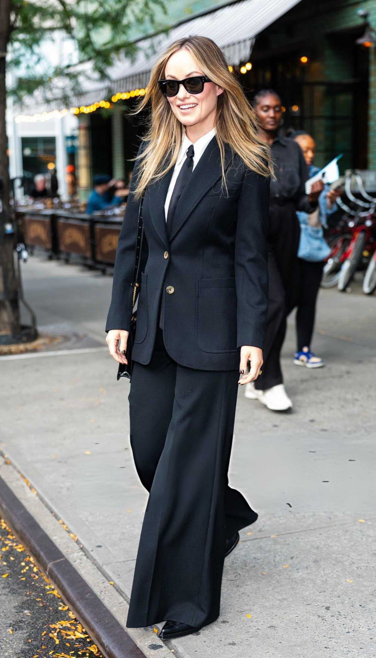 Olivia Wilde in a Black Pantsuit Was Seen in the East Village in New York City 09/22/2025 The 41-year-old actress Olivia Wilde in a black pantsuit was seen in the East Village in New York City.