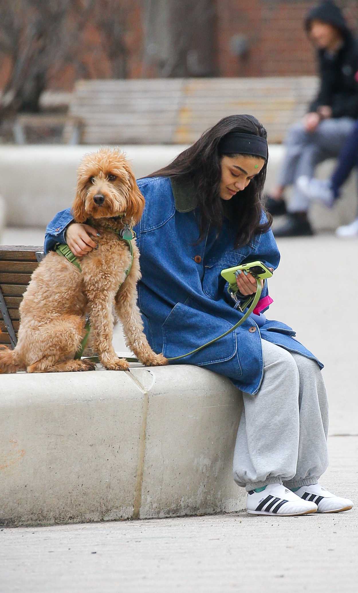 Rachel Zegler in a Grey Sweatpants Walks Her Dog in New York 04/06/2025 The 23-year-old stage actress Rachel Zegler in a grey sweatpants walks her dog in New York.