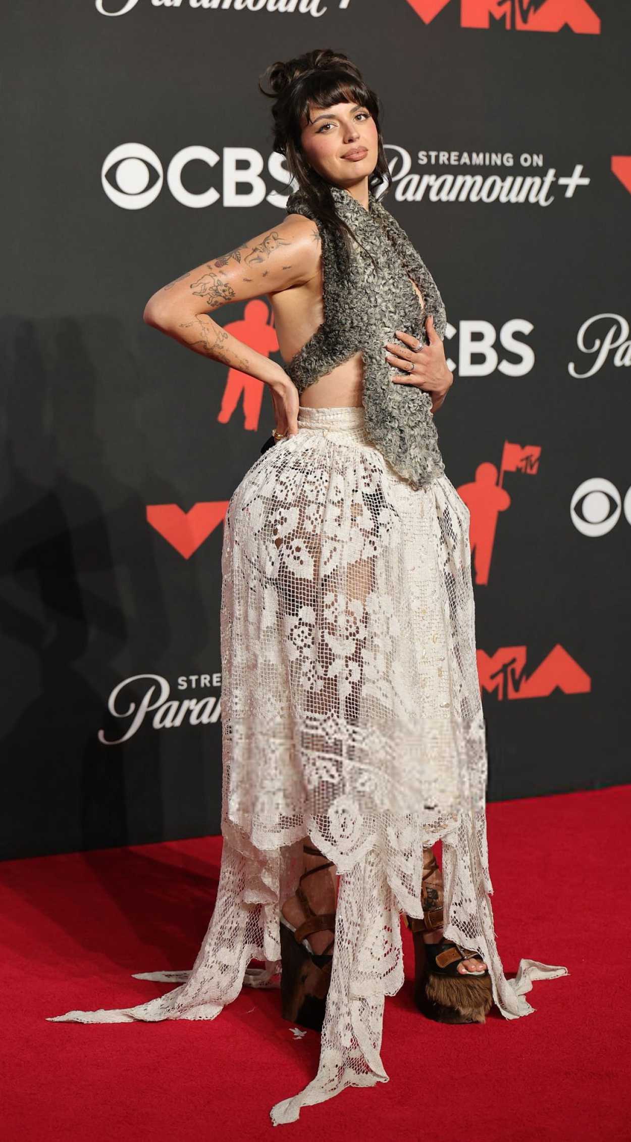 The 28-year-old pop singer Rebecca Black attends 2025 MTV Video Music Awards in New York.
