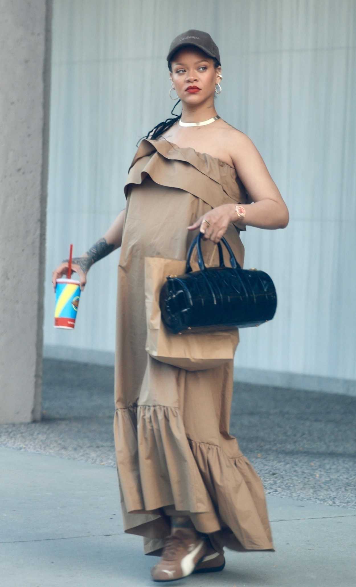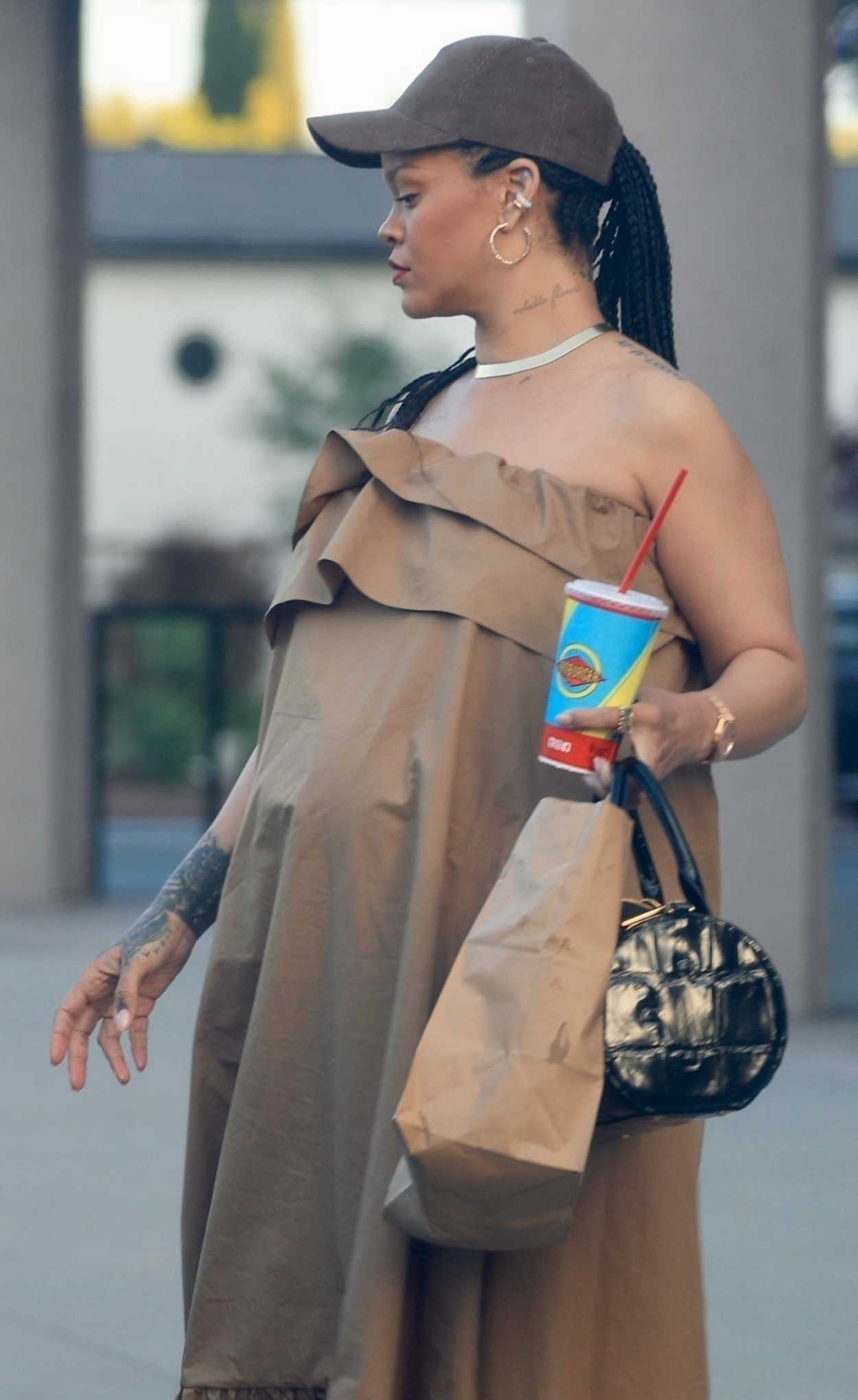Rihanna in a Beige Dress Leaves the FatBurger in Los Angeles 06/19/2025 The 37-year-old R&B singer Rihanna in a beige dress leaves the FatBurger in Los Angeles.