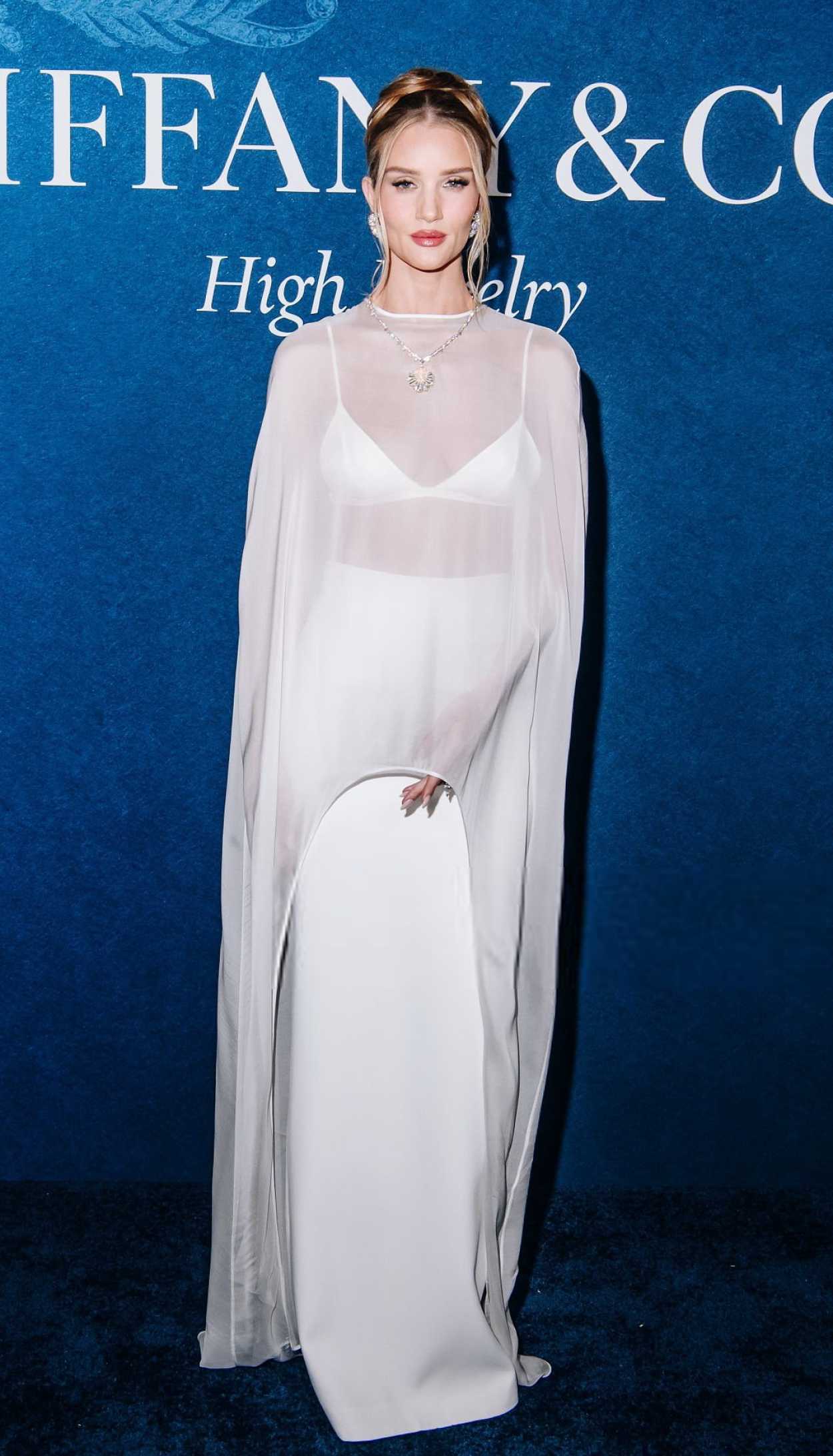 The 38-year-old model and actress Rosie Huntington-Whiteley, who began dating action movie star Jason Statham in 2010, attends the Tiffany & Co celebrates the launch of Blue Book 2025: Sea of Wonder in New York City.