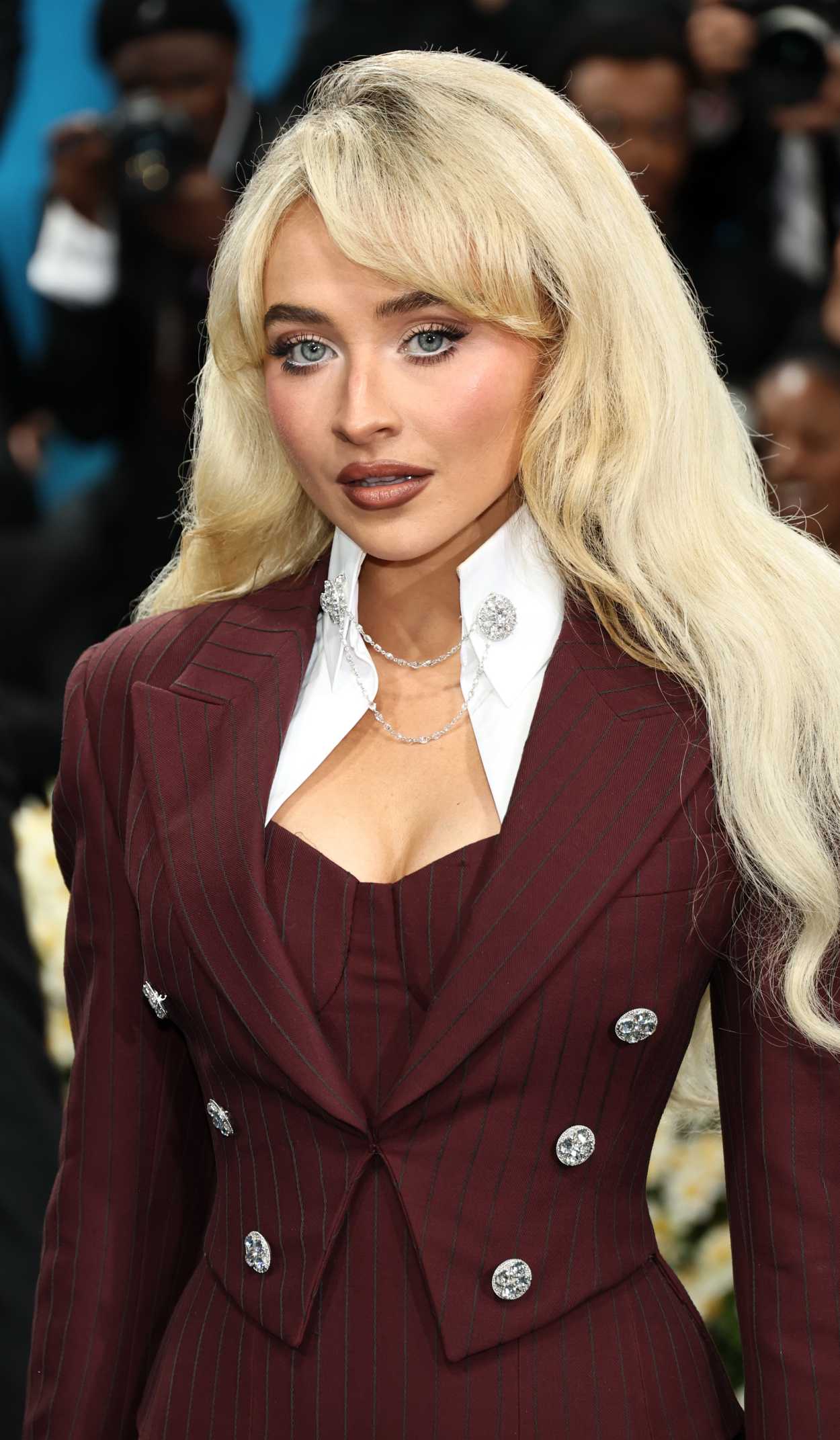 The 25-year-old actress and singer Sabrina Carpenter attends 2025 Met Gala Celebrating “Superfine: Tailoring Black Style” at Metropolitan Museum of Art in New York City.