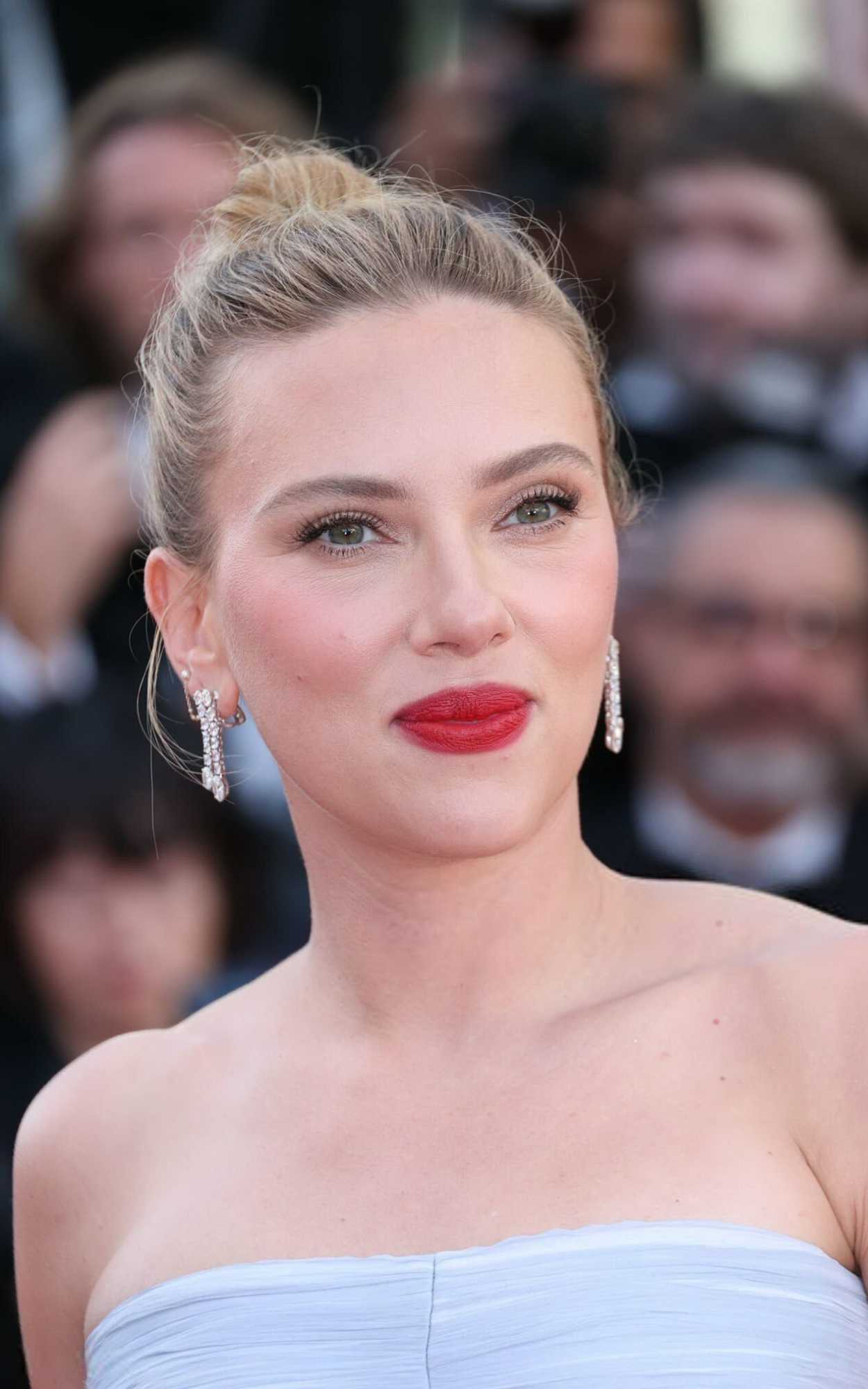 The 40-year-old actress Scarlett Johansson, who was cast as the superheroine Black Widow in the Marvel movie series, attends “A Private Life” red carpet at the 78th Annual Cannes Film Festival in Cannes.