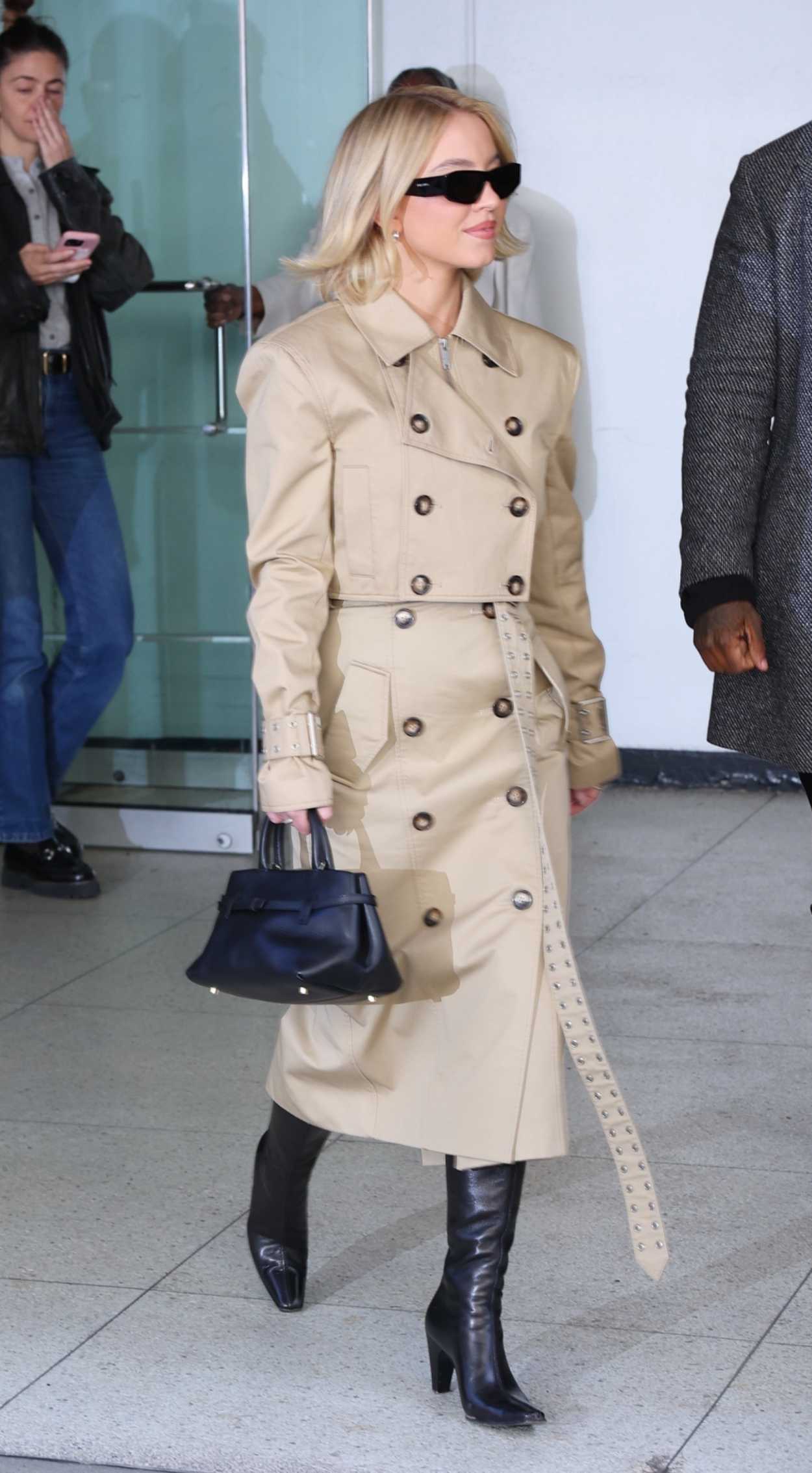 The 28-year-old actress Sydney Sweeney, who won Best Actress honors for her role in “Takeo” at the New York International Film Festival, in a beige trench coat heads to a taping of “The Drew Barrymore Show” in New York.