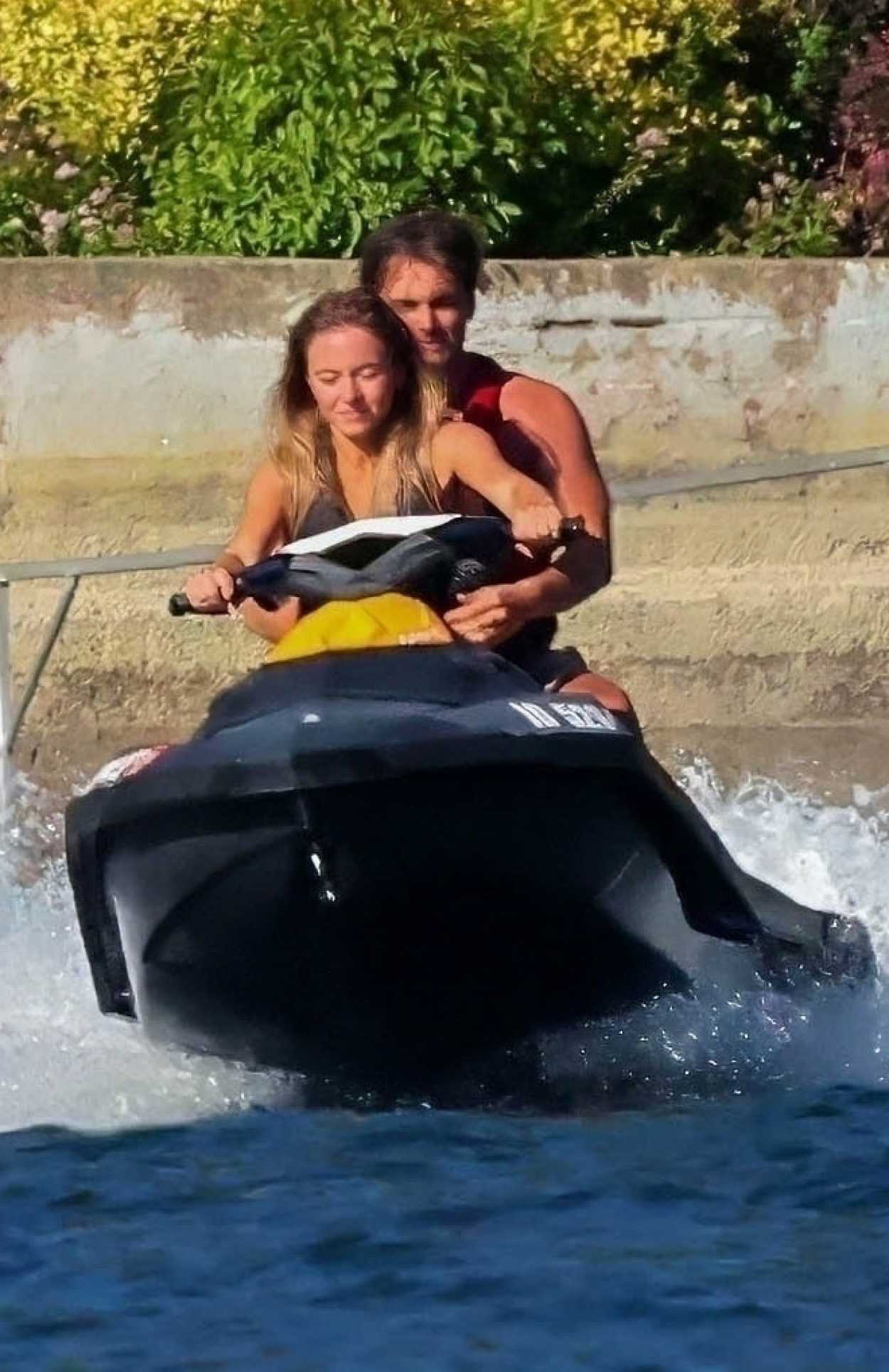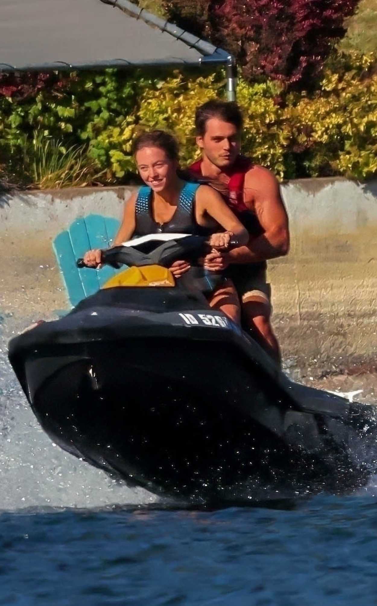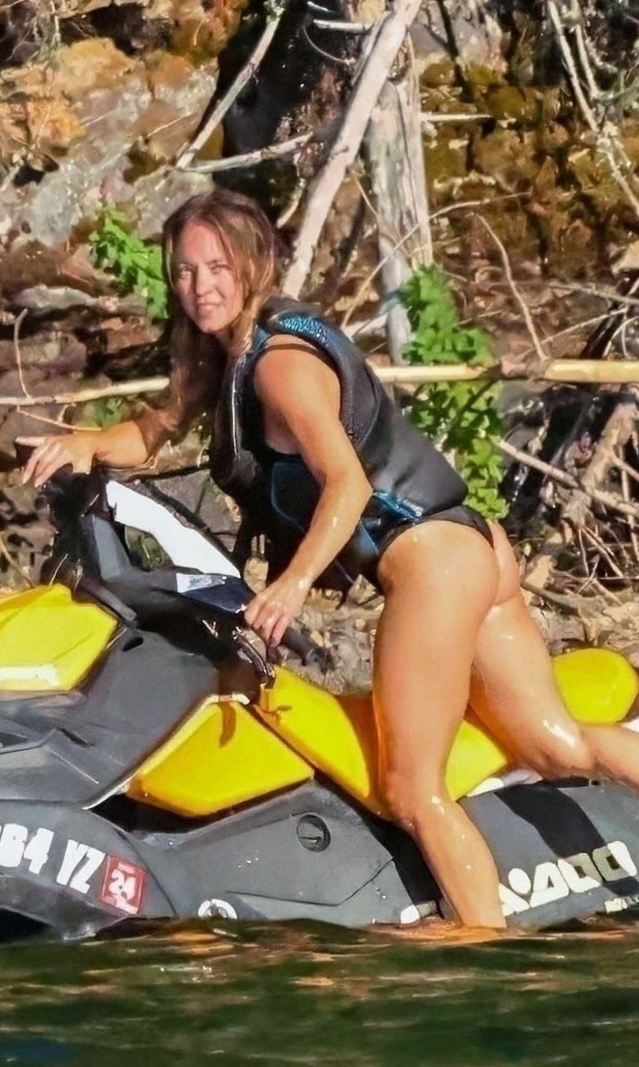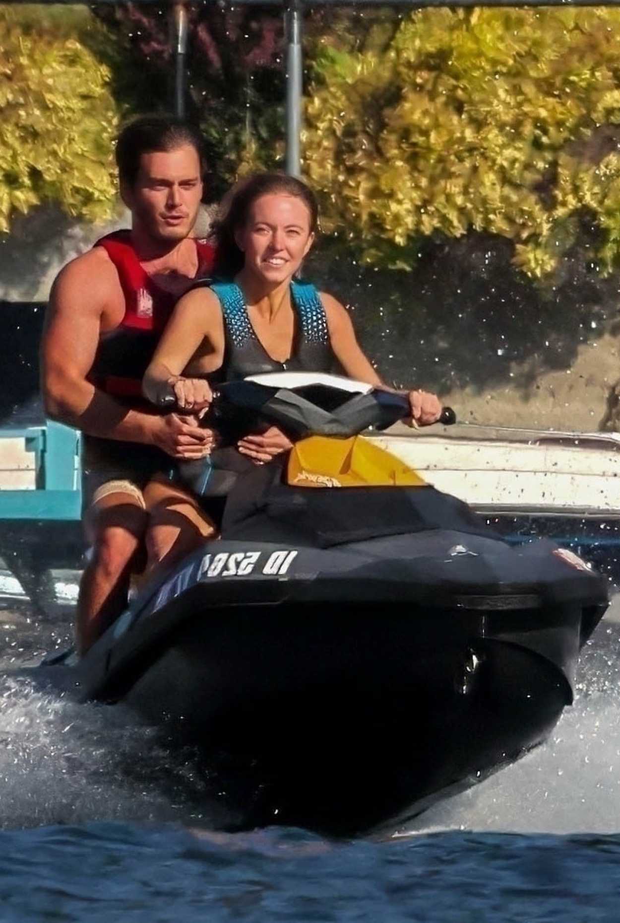 The 27-year-old actress Sydney Sweeney in a black swimsuit spends time with family and friends on a lake in Idaho.