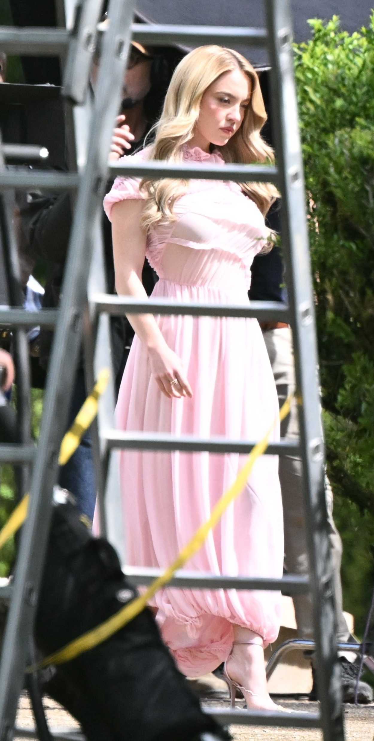 Sydney Sweeney in a Pink Dress Was Seen Filming a Kerastase Ad in Portugal 03/26/2026 The 28-year-old actress Sydney Sweeney in a pink dress was seen filming a Kerastase ad in Portugal.