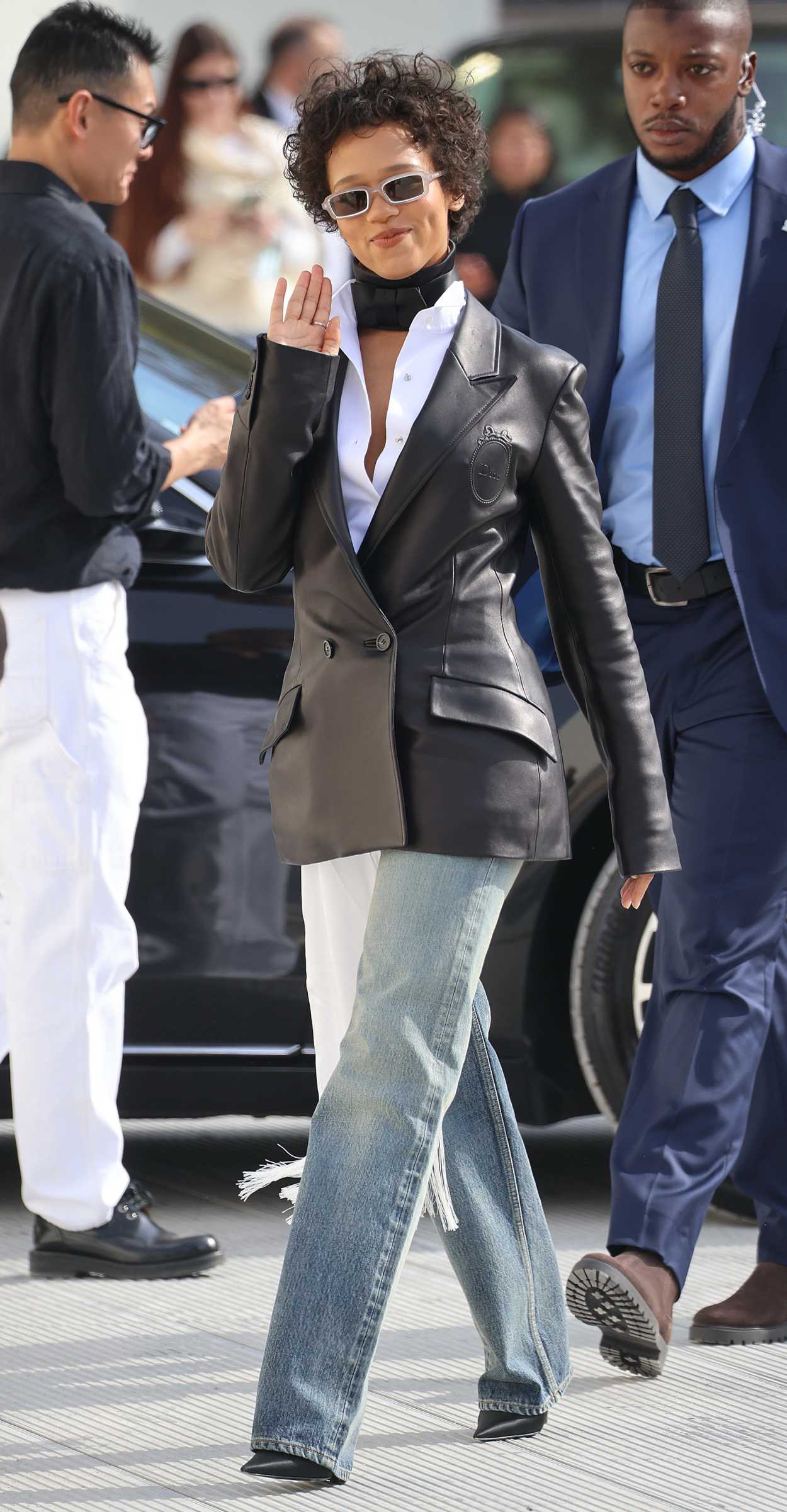 The 31-year-old actress Taylor Russell attends the Christian Dior Fashion Show during 2025 Paris Fashion Week in Paris.