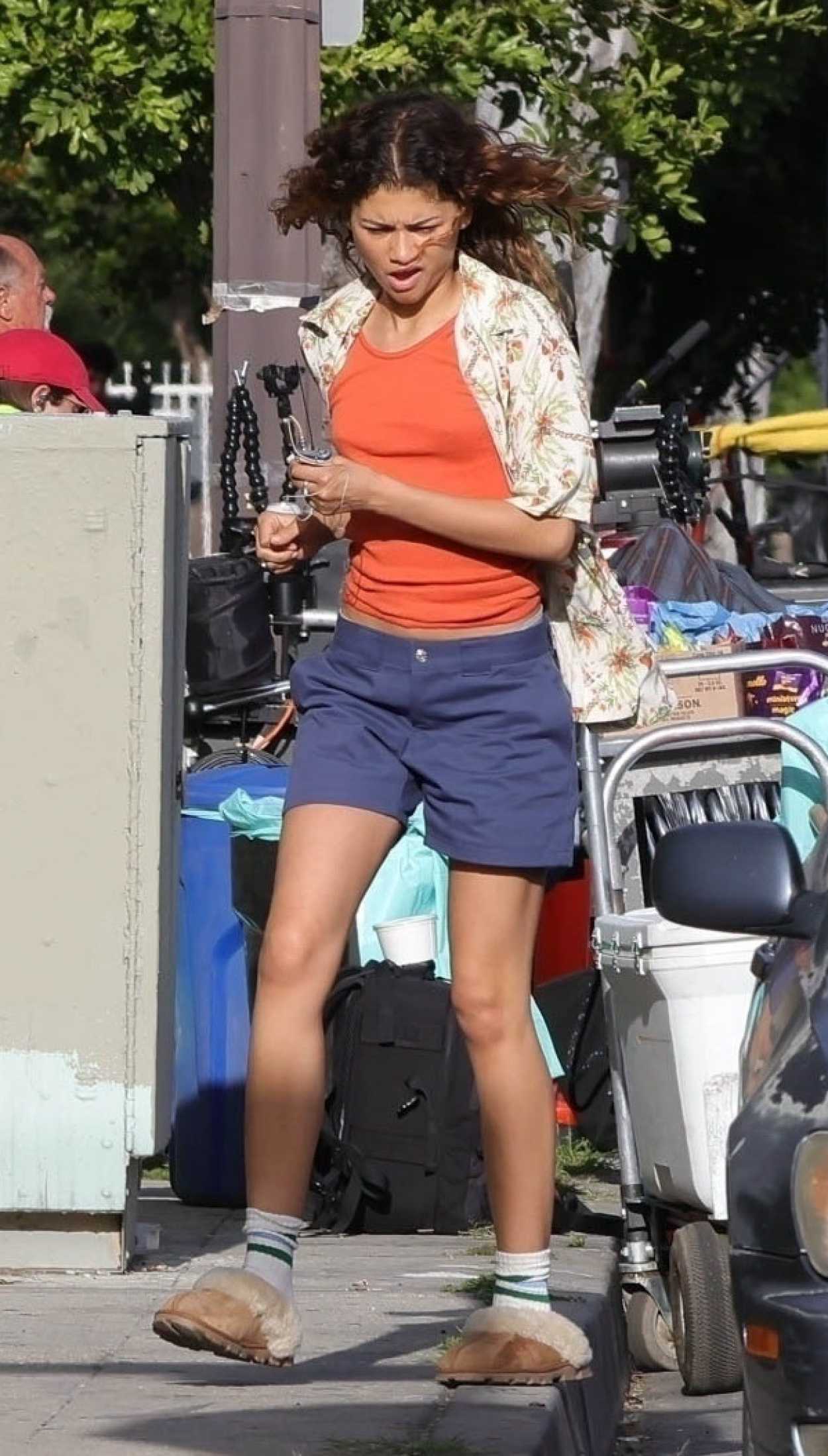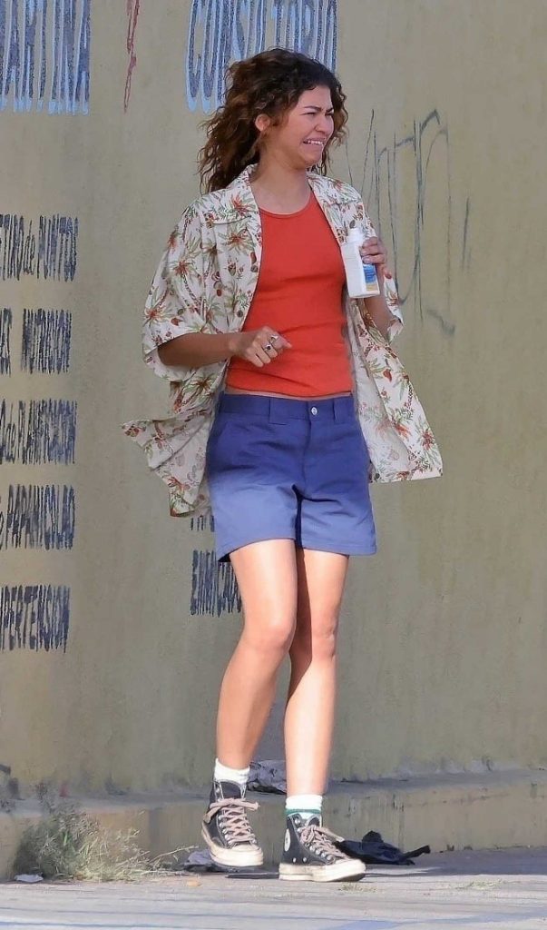 Zendaya in a Blue Shorts on the Set for Euphoria Season 3 in South Gate 05/12/2025 The 28-year-old actress and singer Zendaya Coleman, who in 2020 began dating actor Tom Holland, in a blue shorts on the set for “Euphoria” season 3 in South Gate.